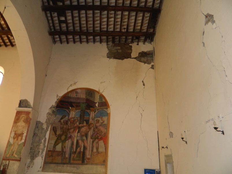 Chiesa della Madonna della Torre. Danneggiamento strutturale e dei dipinti murali